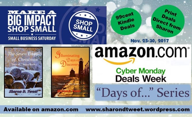Small Business Saturday and Kindle specials on the "Days of... Series" now thru the end of November. 99cent Kindle deals and special paperback prices direct from Sharon. Read more!